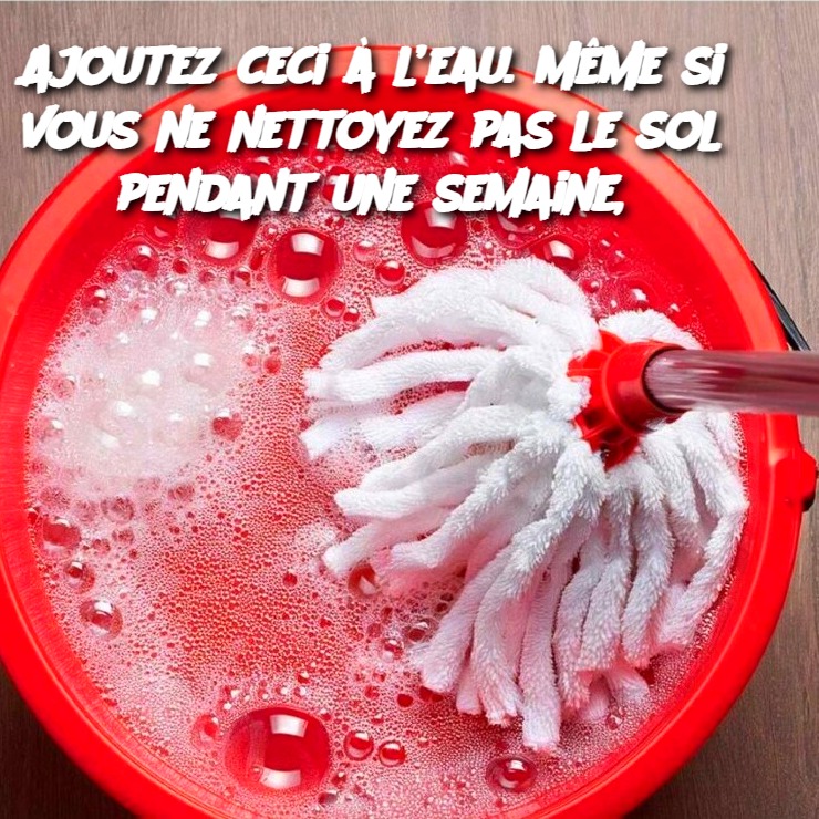 Ensuite, mettez ces choses dans la bassine/le seau d’eau pour nettoyer le sol :