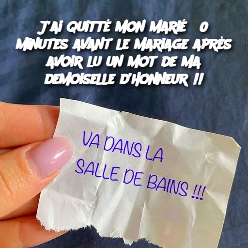 C’était une matinée remplie de nervosité joyeuse. Jane, sublime dans sa robe blanche, ajustait son maquillage lorsque Cindy, sa meilleure amie et témoin, fit irruption. Elle la serra dans ses bras, un geste inhabituel qui trahissait une urgence. Cindy a glissé un petit papier dans la main de Jane, chuchotant : « Lis ça maintenant. » Le cœur de Jane s’emballa.