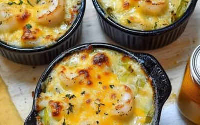 🥘 Cassolettes Gratinées aux Crevettes et Poireaux 🦐✨ 🔸 500 g de crevettes (déjà décortiquées, idéalement des crevettes sauvages pour plus de goût)…