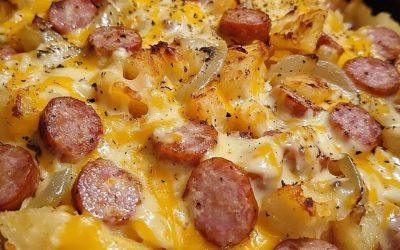Ingrédients : 5 pommes de terre moyennes, coupées en dés 1 oignon moyen, émincé 400 g de saucisses, coupées en…