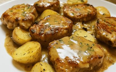 Ingrédients pour 4 Personnes 4 côtelettes de porc 2 pommes (Golden ou Gala) 1 oignon émincé 20 g de beurre…