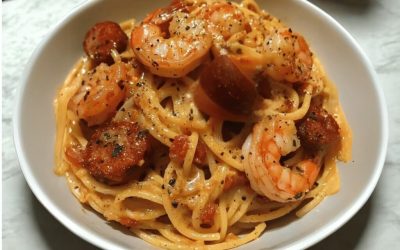 Les spaghetti à la crème de poivron, chorizo et crevettes sont un plat savoureux qui marie les saveurs méditerranéennes dans…