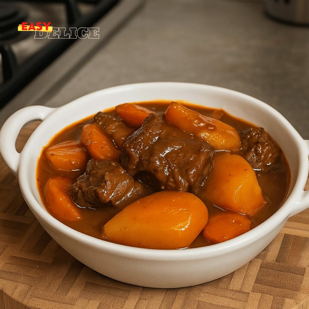 Ce bœuf tendre en sauce maison est un plat généreux et réconfortant, parfait pour un repas familial.