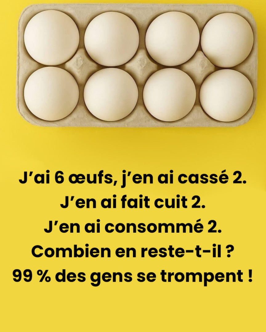 “J’ai 6 œufs. J’en ai cassé 2. J’en ai fait frire 2. J’en ai mangé 2. Combien d’œufs me reste-t-il ?” À première vue, on se dit : c’est facile. En quelques secondes, on donne une réponse, presque machinalement. Et pourtant… la majorité se trompe. Pourquoi ? Parce que cette énigme joue avec nos réflexes et notre façon d’analyser. Allez, on la décortique ensemble ?