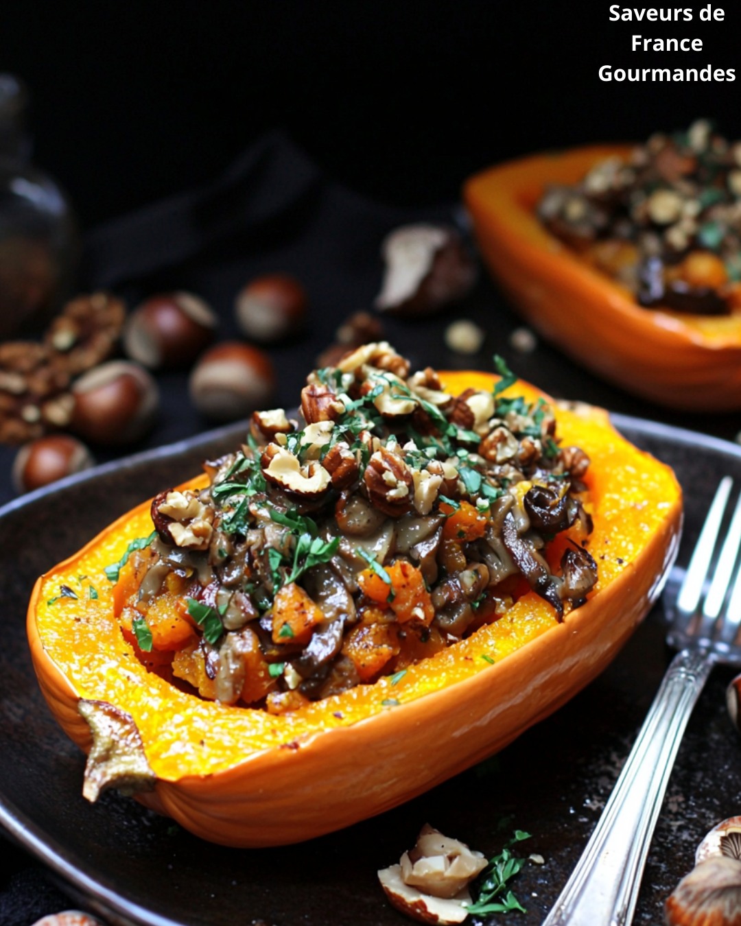 Courge Butternut Farcie aux Champignons et Fromage Fondu 🍂