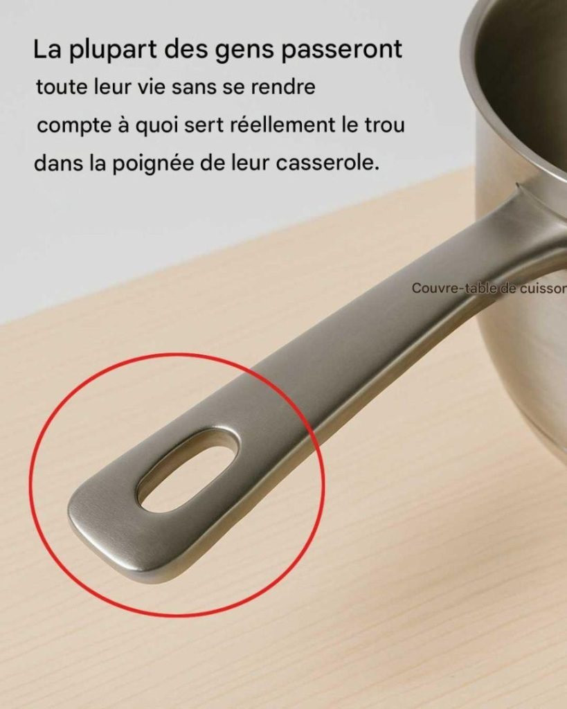 Dans le monde des ustensiles de cuisine, chaque élément de design a une fonction, même si elle n’est pas immédiatement apparente. L’un de ces éléments passe souvent inaperçu : le trou dans la poignée de nombreuses casseroles et poêles. À première vue, ce petit trou discret peut sembler une simple idée de dernière minute ou un simple choix de design. Pourtant, il cache un secret que beaucoup ignorent toute leur vie. Cet article explore le mystère du trou dans la poignée de casserole, ses utilisations pratiques et démystifie les idées reçues.