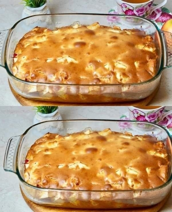 3 œufs 100g (1/2 tasse) de sucre Une pincée de sel 1 cuillère à café de sucre vanillé 100ml de lait 80 g d'huile 240g (2 tasses) de farine 2 cuillères à café de levure chimique 4 pommes (environ 800g) 200 ml de verre Instructions :